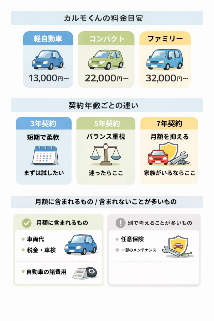 カルモくんの月額の目安と料金の考え方を、