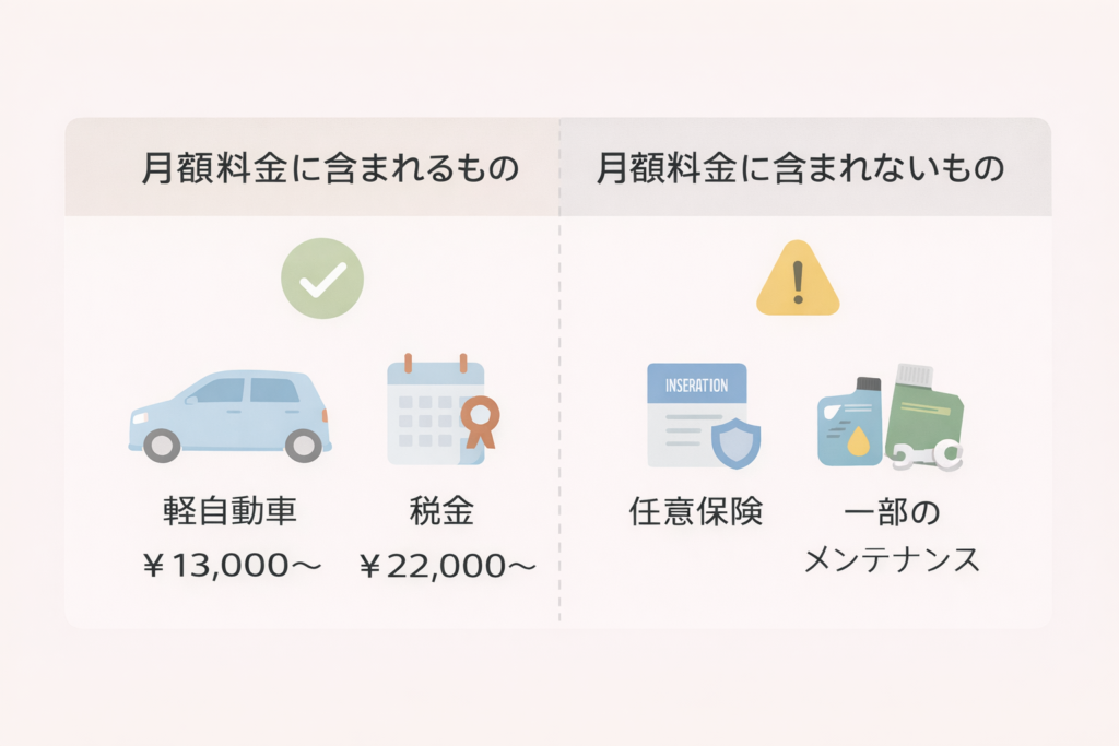 自動車税・車検費用も月額に含まれているため、急な出費が発生しにくいのが特徴です。